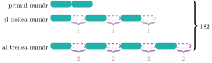 Cel mai mic dintre cele trei numere consecutive este reprezentat grafic printr-un segment. Atunci primul număr este reprezentat prin două segmente de același fel, al doilea număr este reprezentat prin trei segmente și încă trei unități, iar cel de al treile număr este reprezentat prin patru segmente și încă opt unități, adică avem reprezentarea